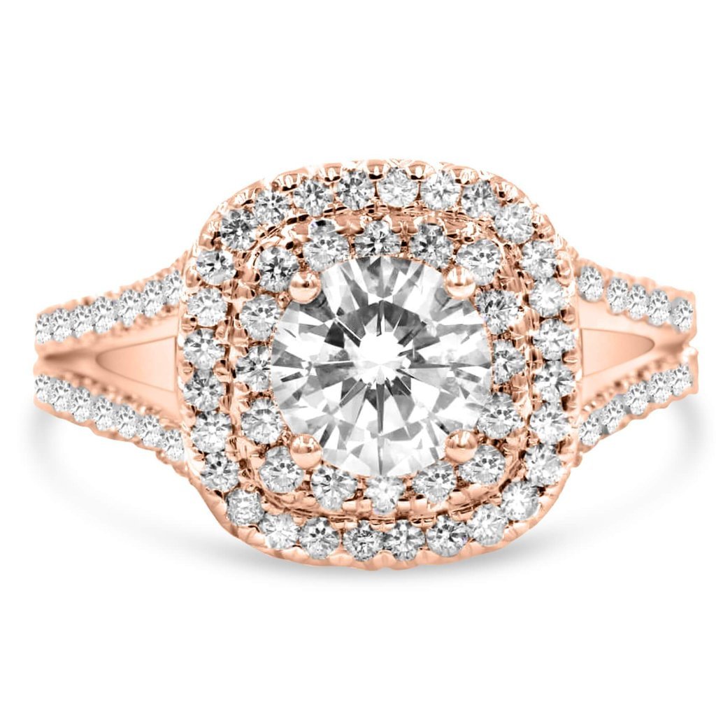 GABBY | Round & Cushion Double Halo Split Shank Engagement Ring