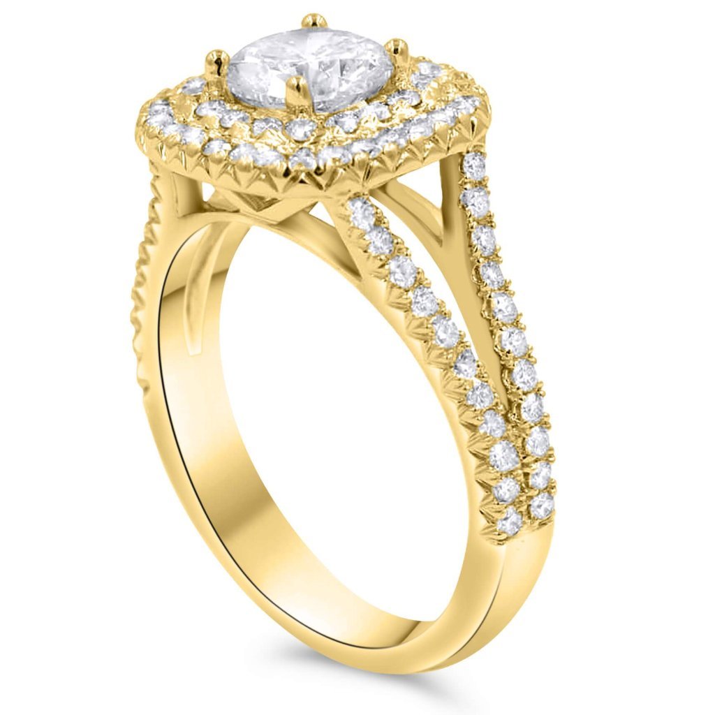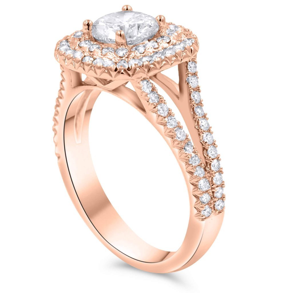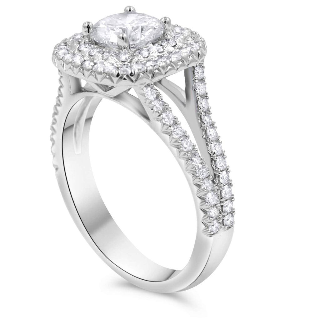 This sparkly ring features a double Halo with a split shank look. Perfect for those brides who want a blingy look with a modern twist.
