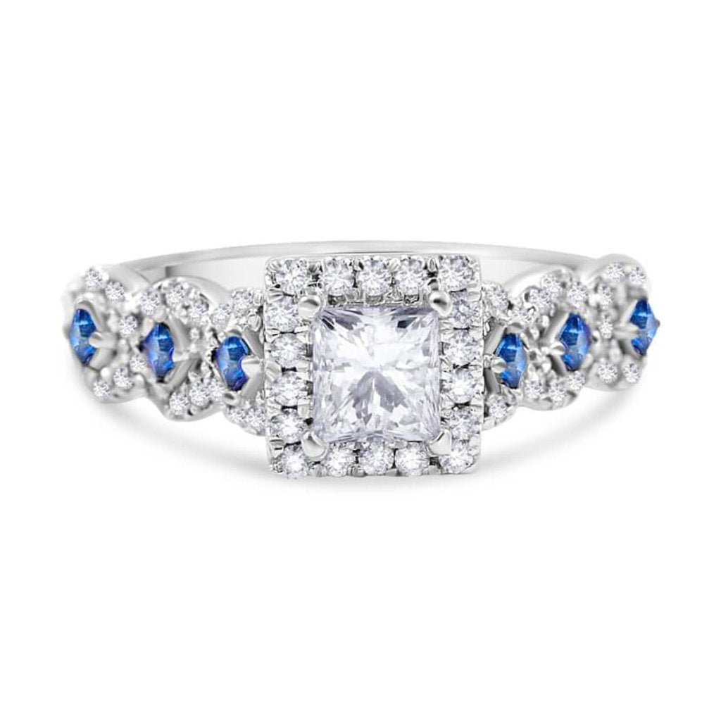 KATIE | Princess Cut Halo Sapphire Engagement Ring