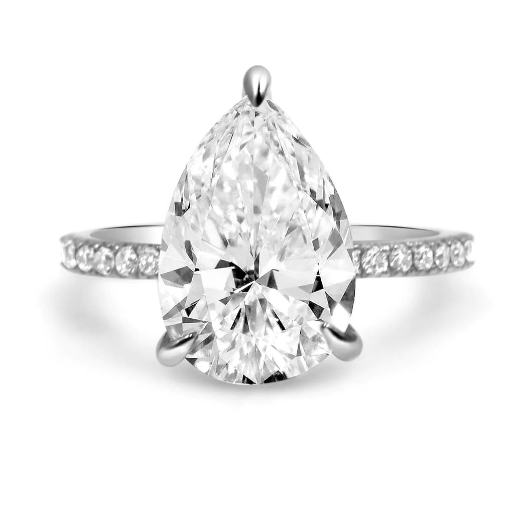 Brides love this ring because you can mix and match any wedding band with it. The attention is all on her, that one-of-a-kind center stone in your ring. Perfect for our pear shape lovers!