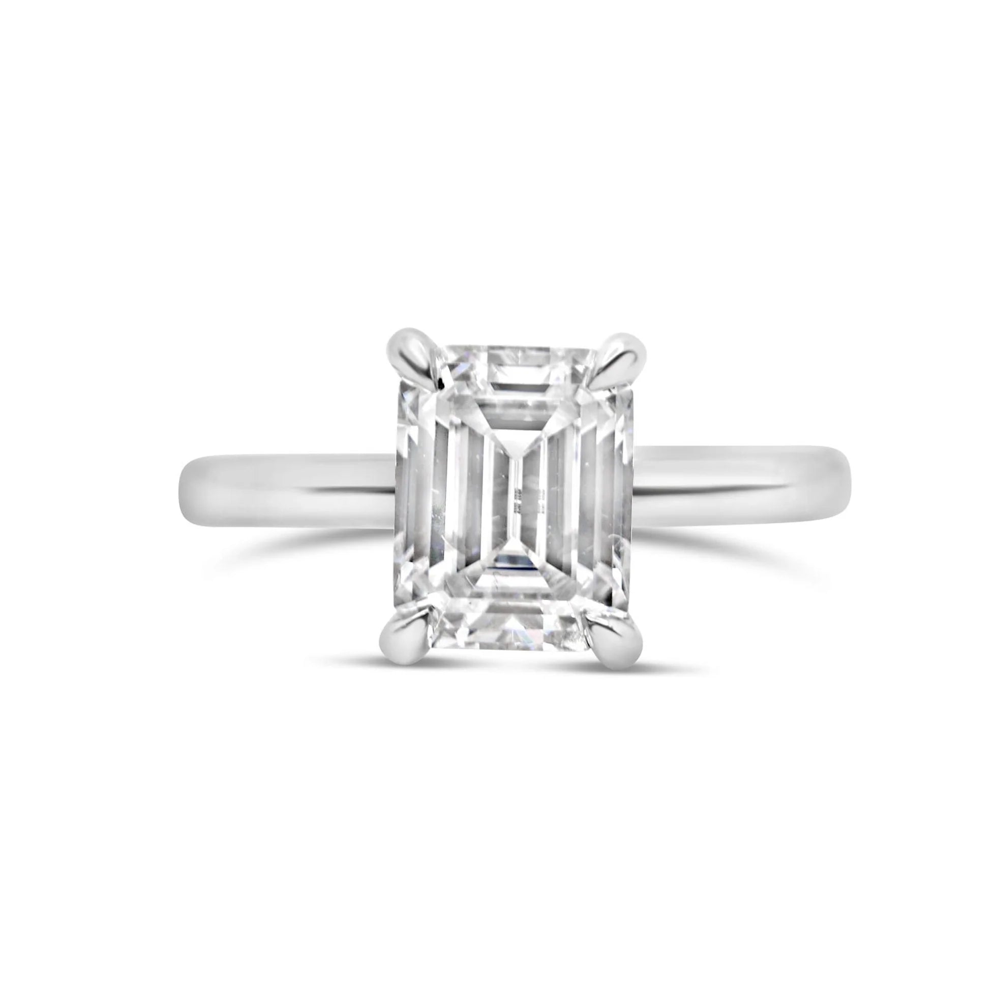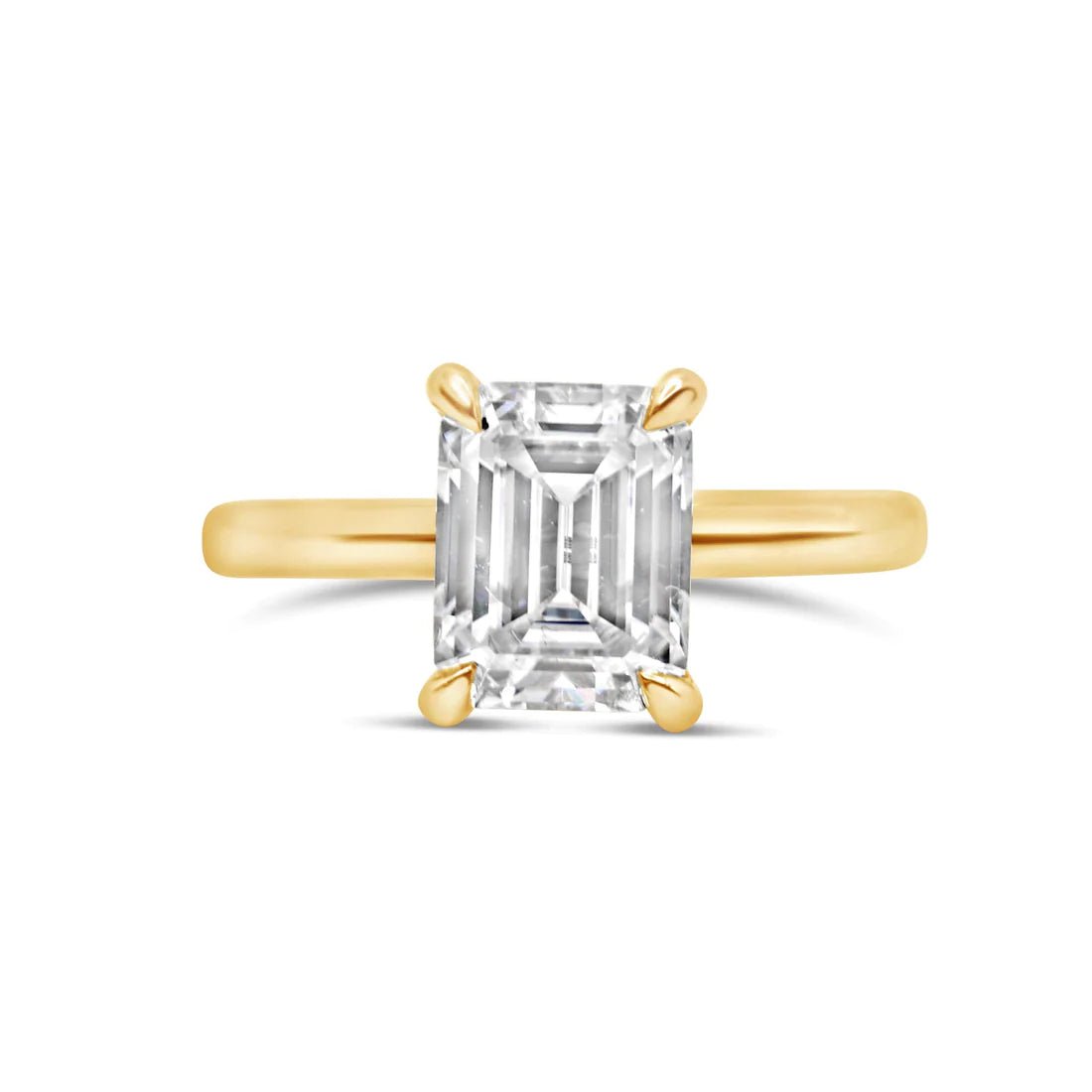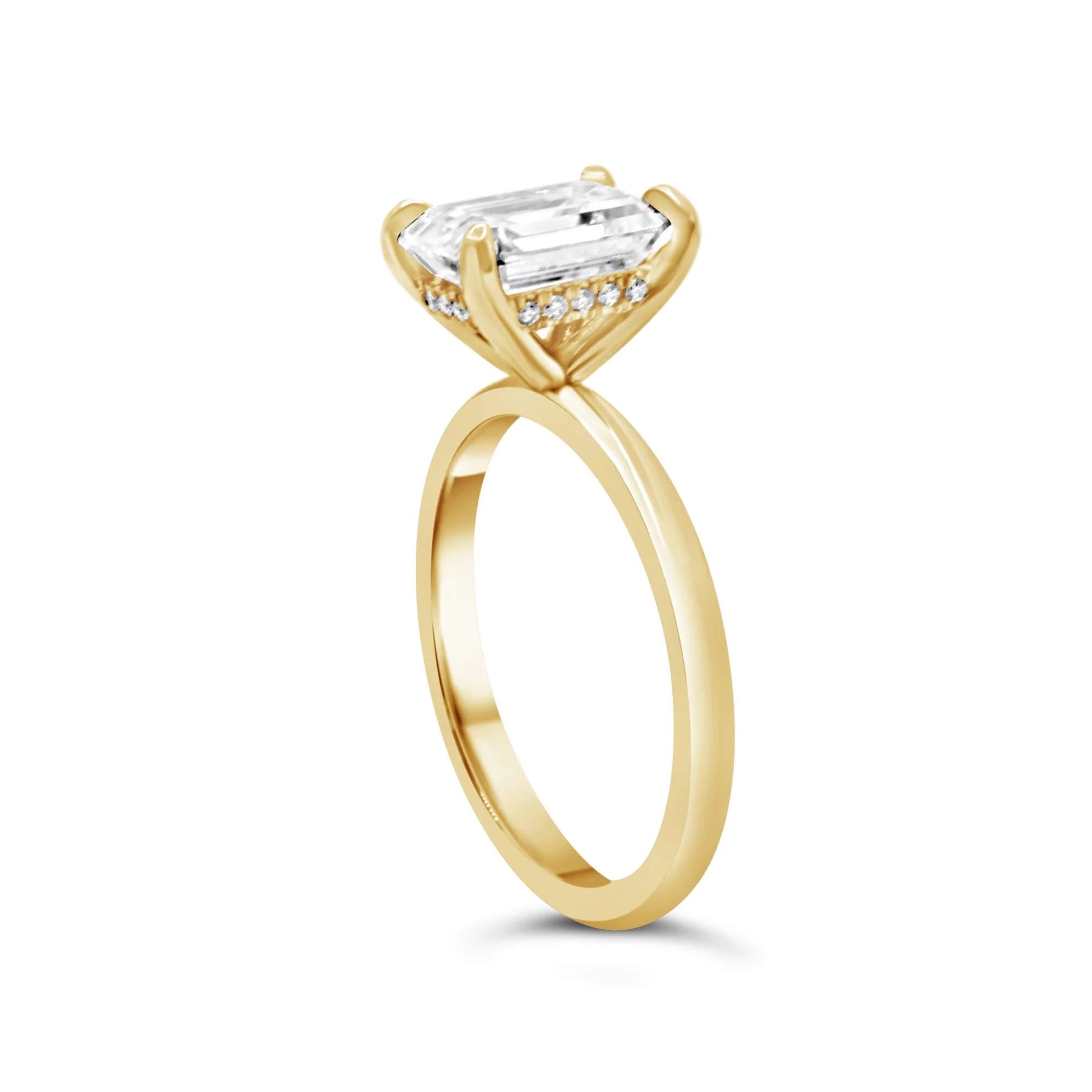 This beautiful engagement ring is the one and only classic Emerald with a hidden halo. You can't go wrong with this delicate design. It will always be timeless. Brides love this ring because you can mix and match any wedding band with it. The attention is all on her, that one of a kind center stone in your ring. Perfect for our emerald shape lovers!