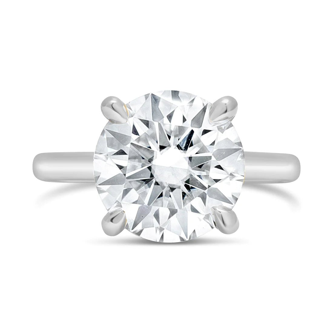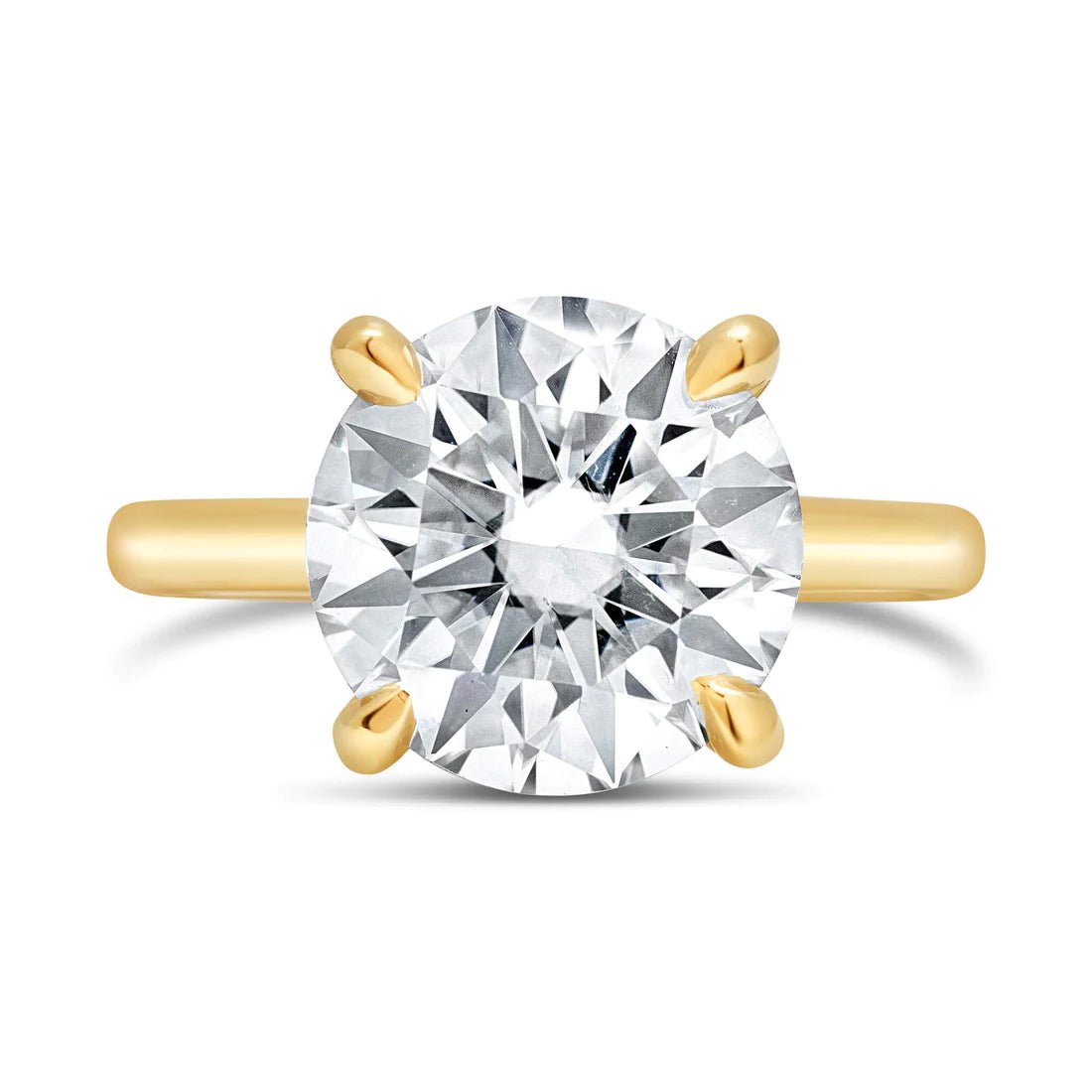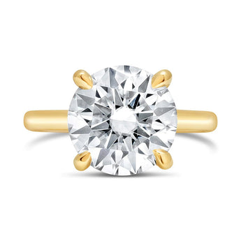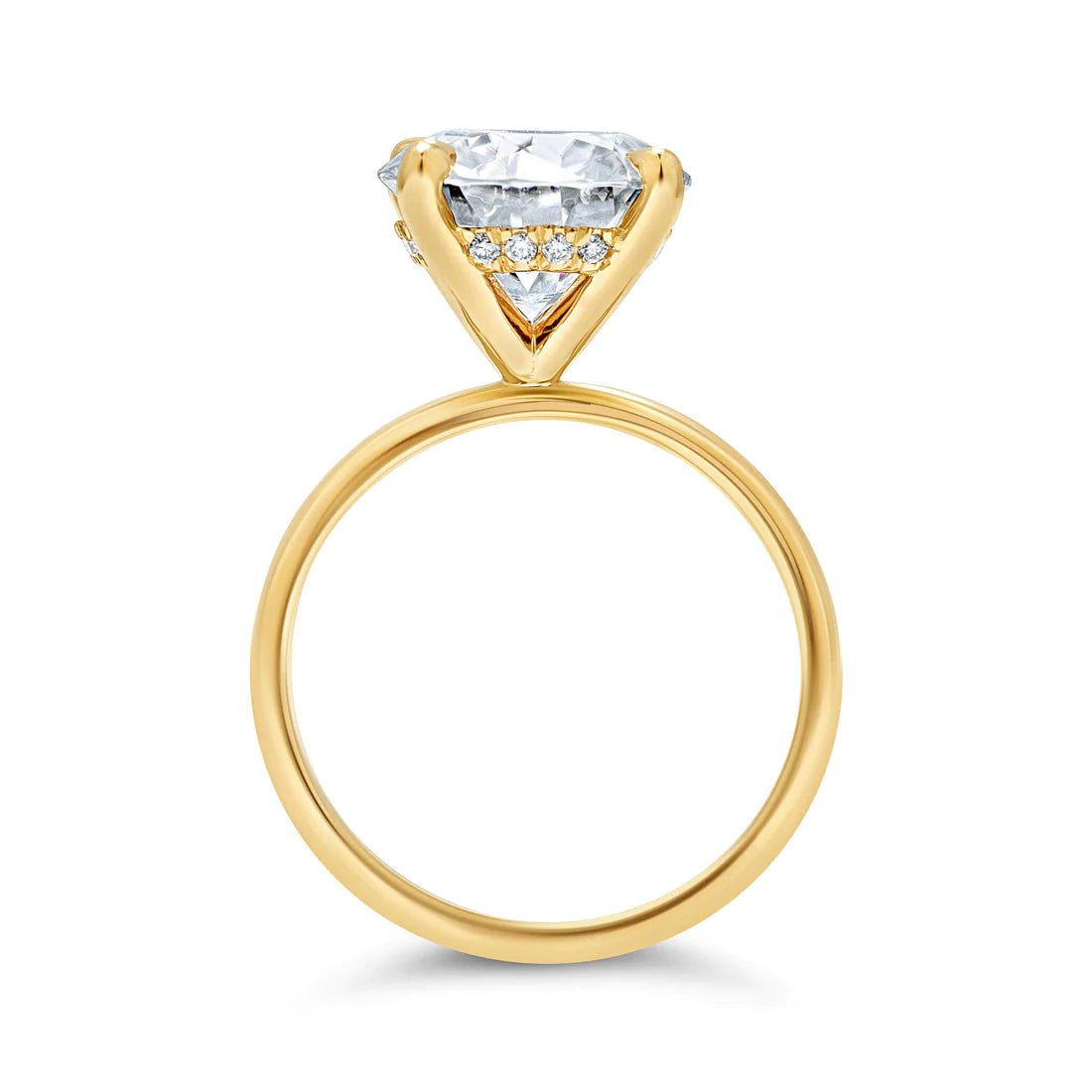 This beautiful engagement ring is the one and only classic Round with a hidden halo. You can't go wrong with this delicate design. It will always be timeless. Brides love this ring because you can mix and match any wedding band with it. The attention is all on her, that one of a kind center stone in your ring. Perfect for our round shape lovers!