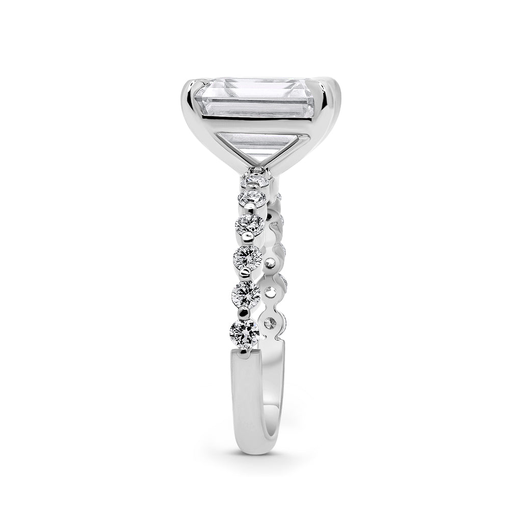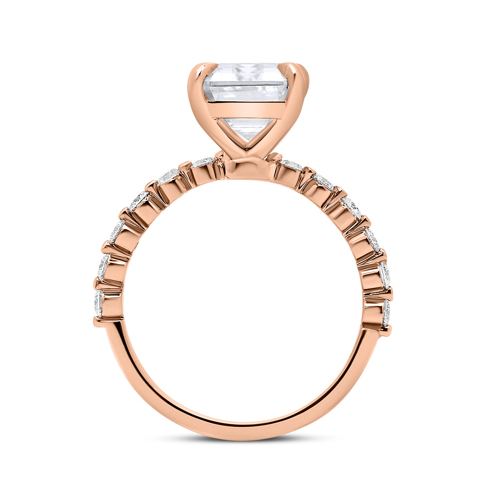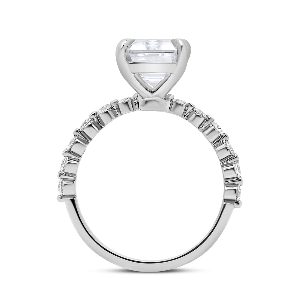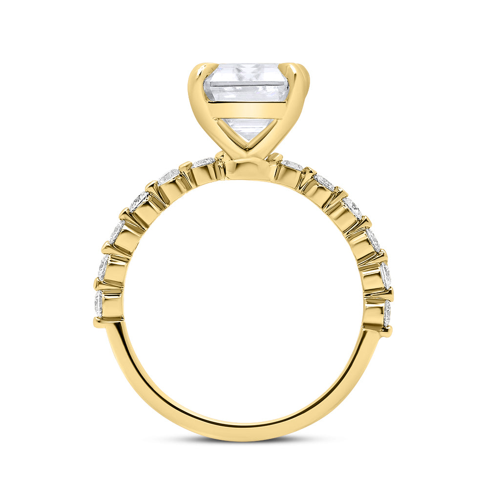 The shank features ideal cut round diamonds. It will always be timeless. Brides love this engagement ring because you can mix and match any women's diamond wedding band & women's moissanite wedding bands for the perfect stack.