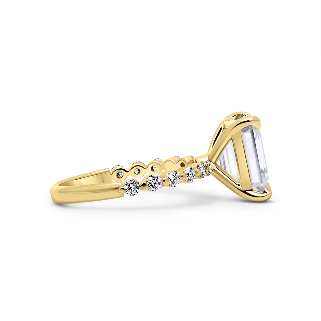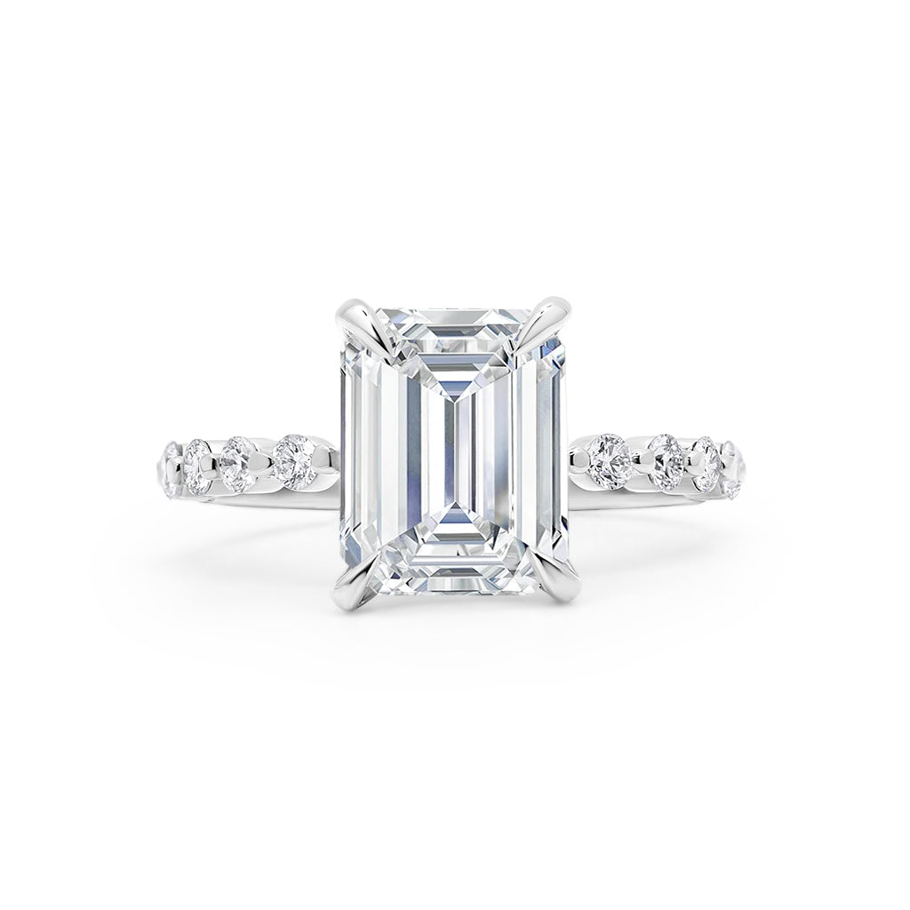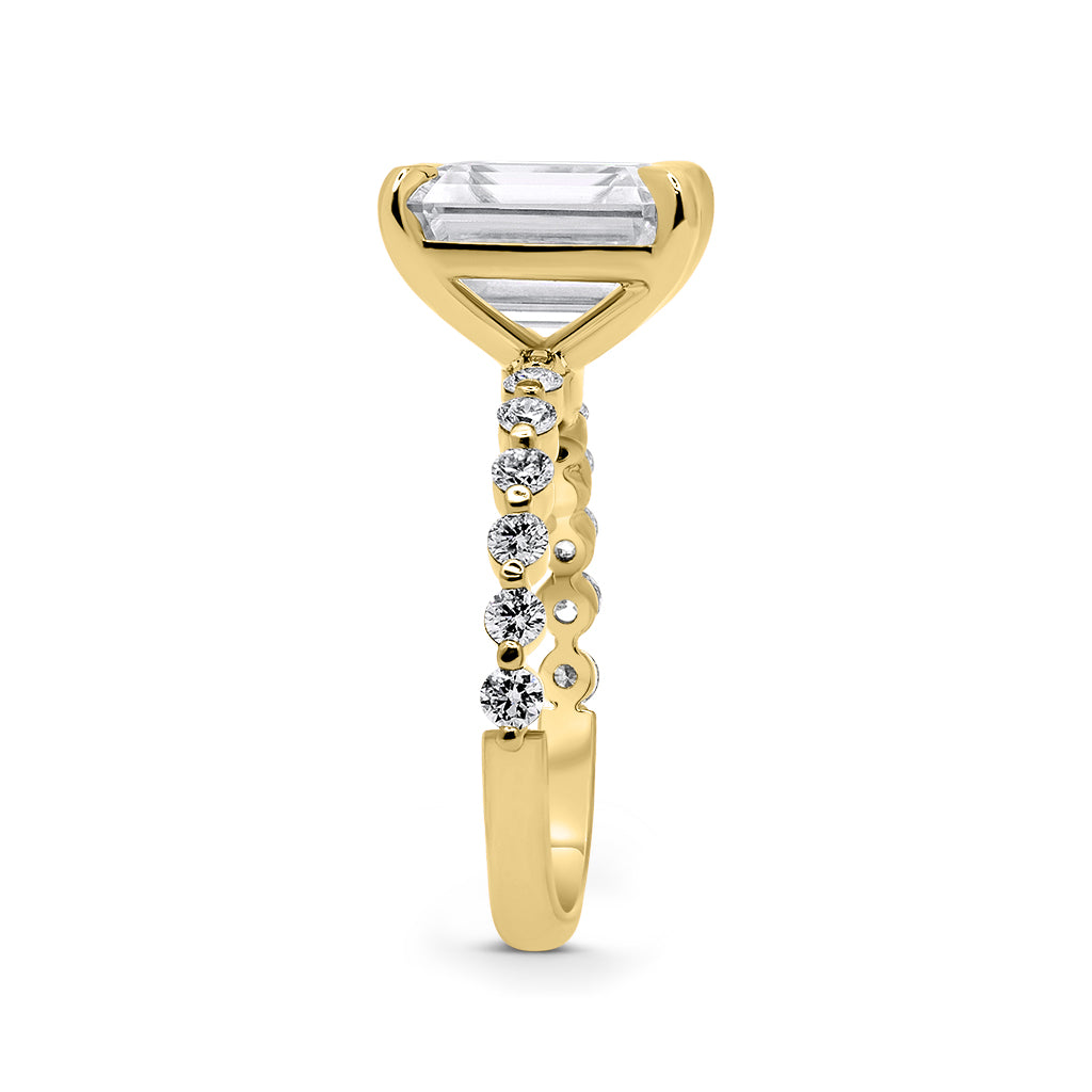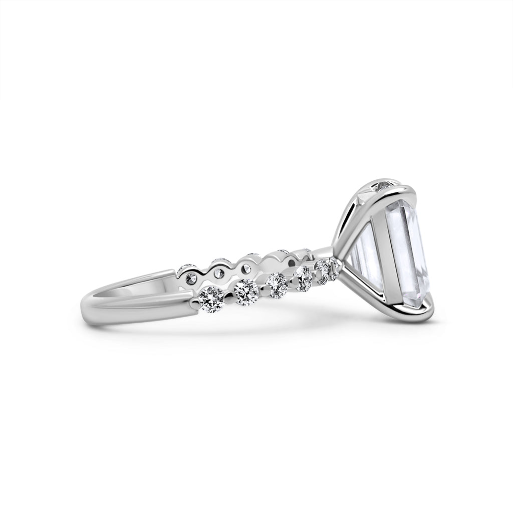 The shank features ideal cut round diamonds. It will always be timeless. Brides love this engagement ring because you can mix and match any women's diamond wedding band & women's moissanite wedding bands for the perfect stack.