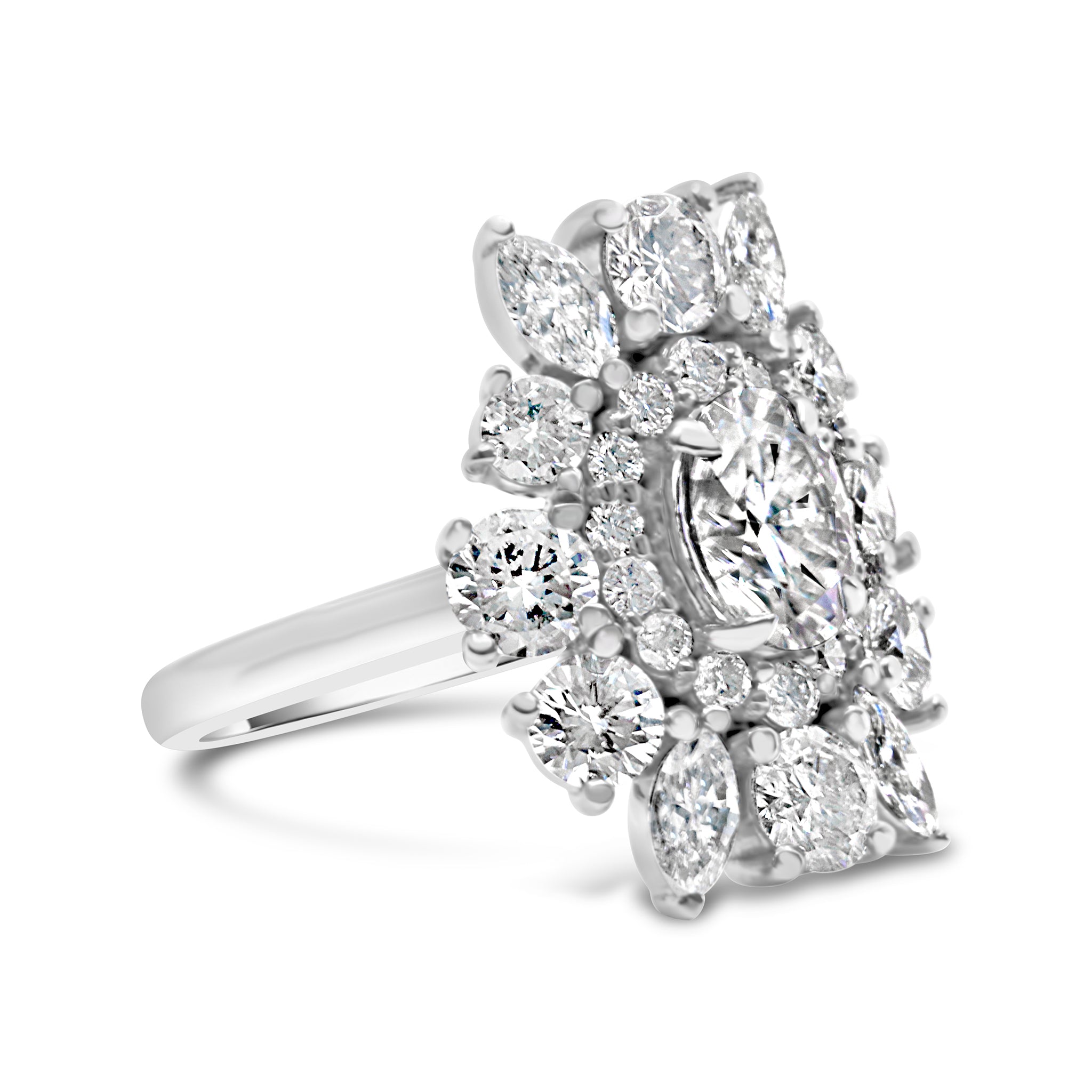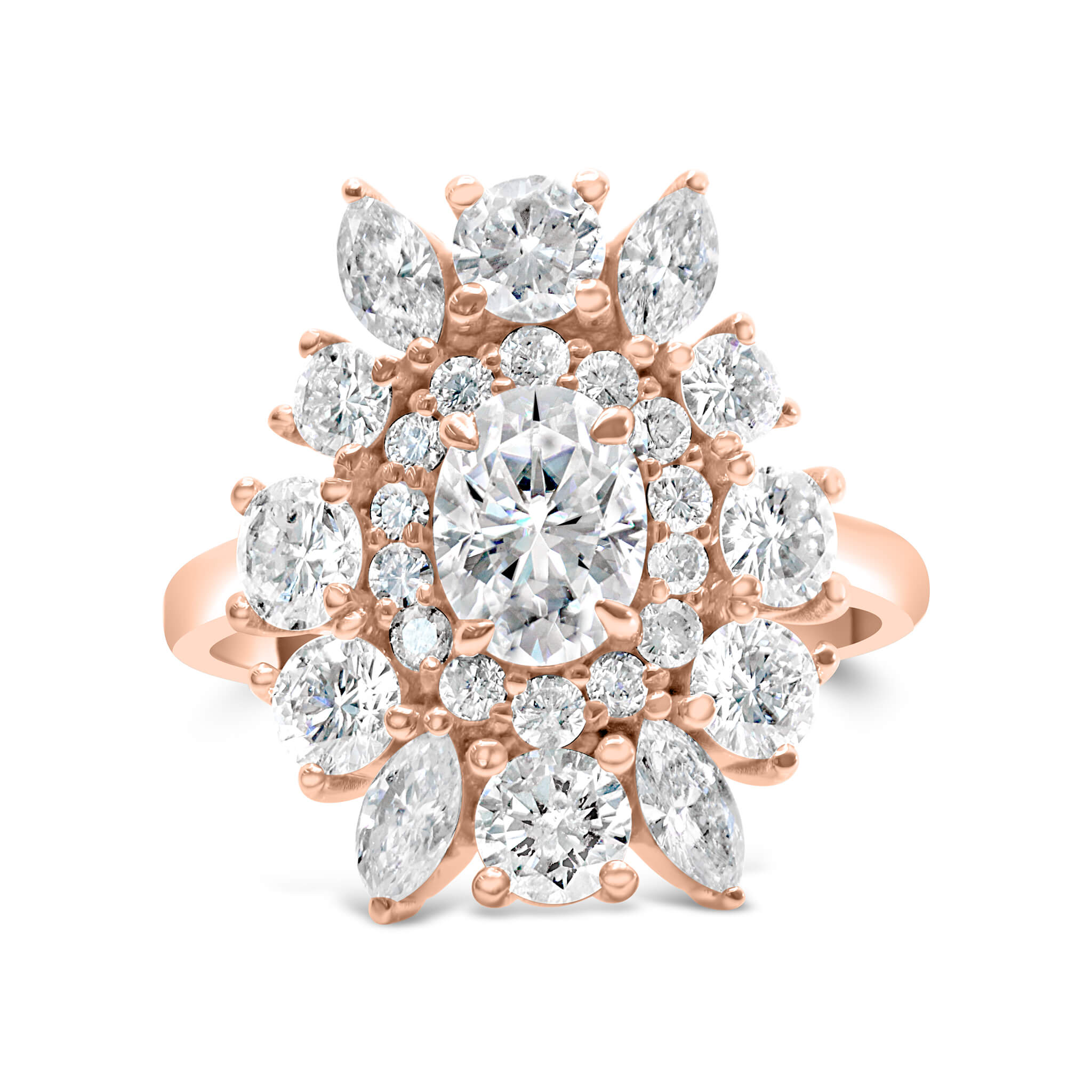 This beautiful engagement ring is perfect for any center stone. It features a double halo of round and marquise cut lab grown diamonds. Perfect for our vintage inspired lovers!