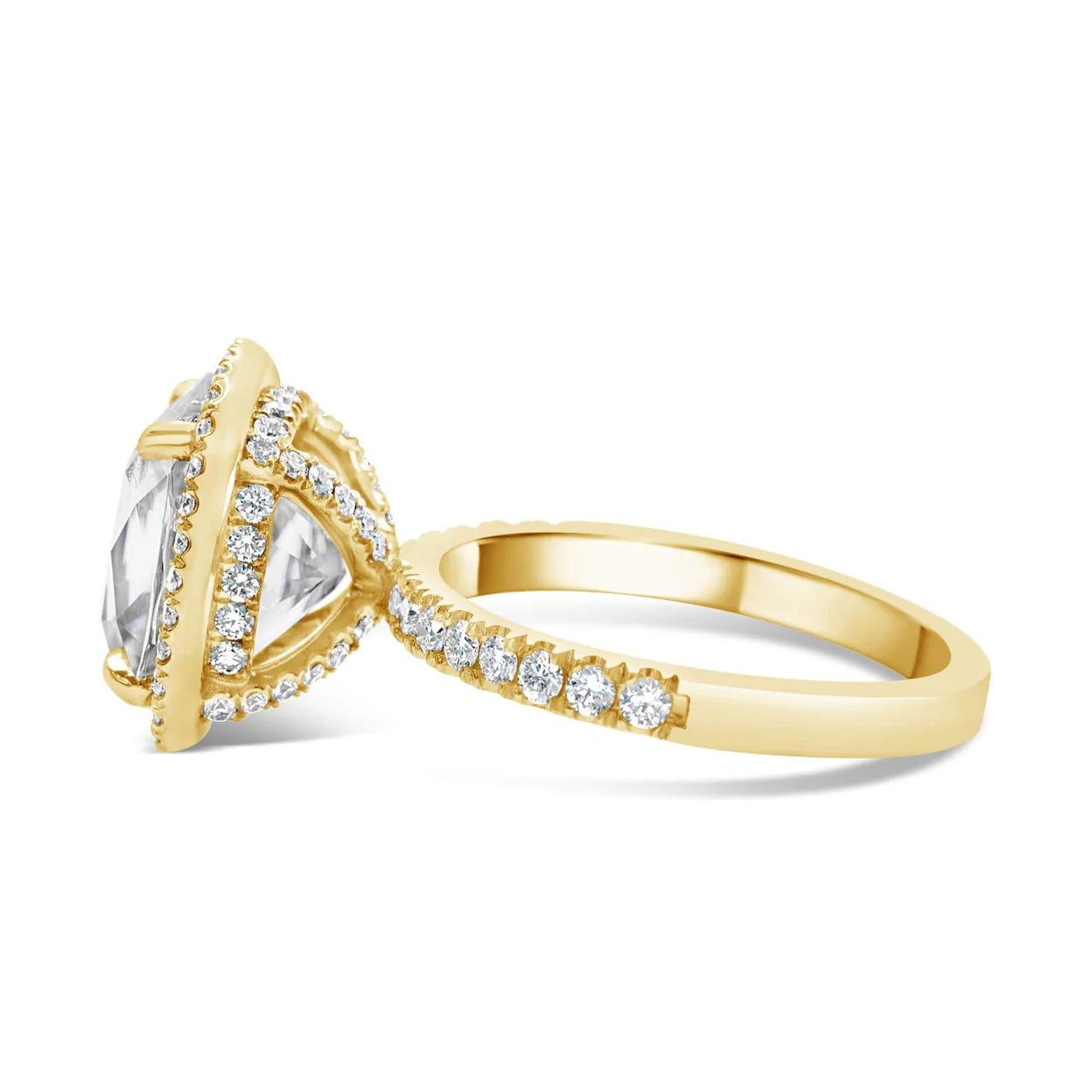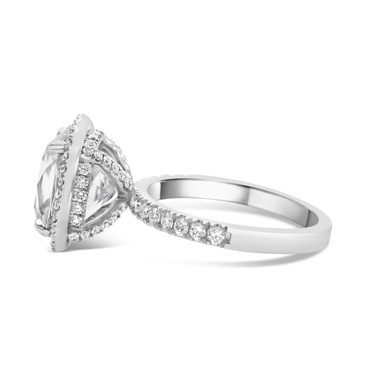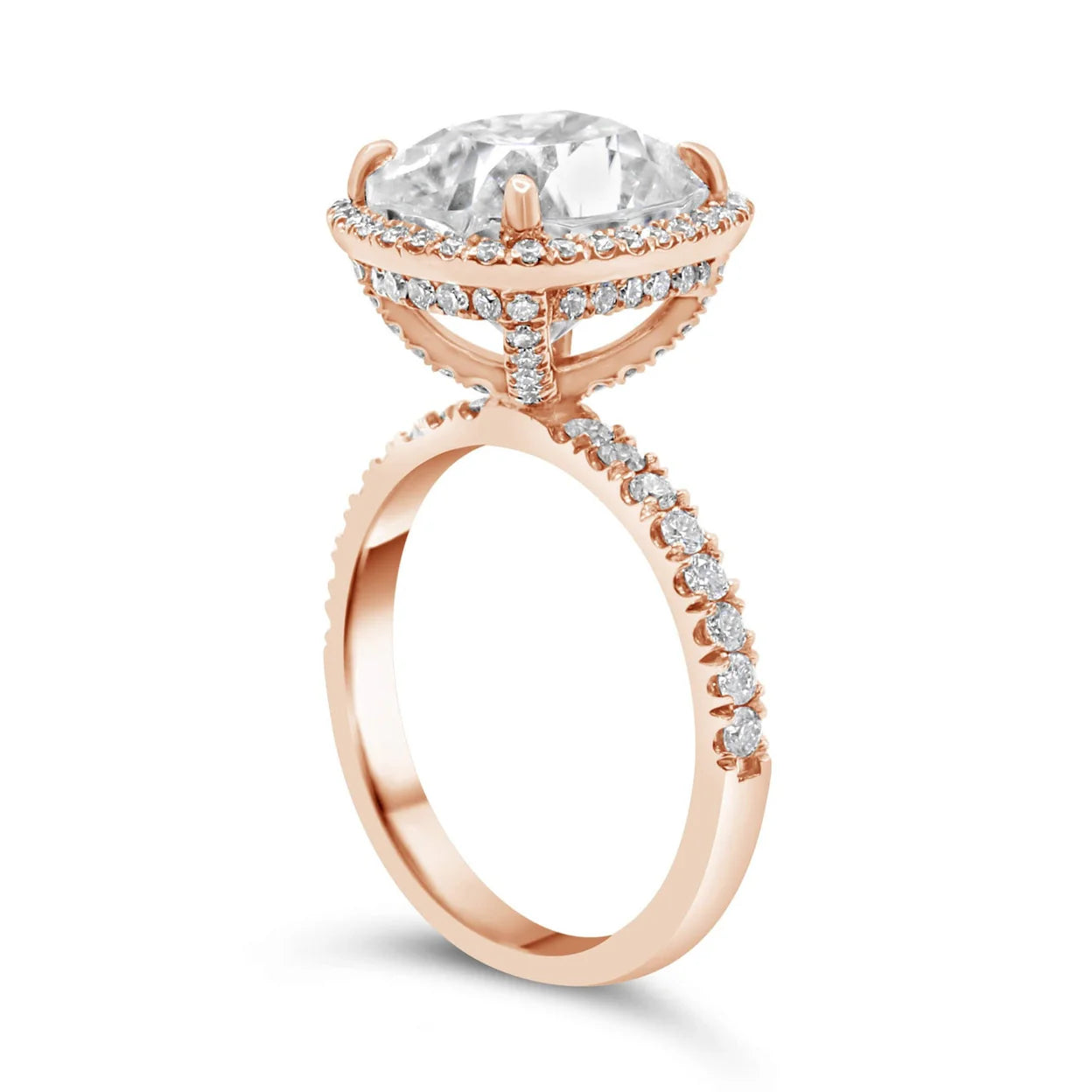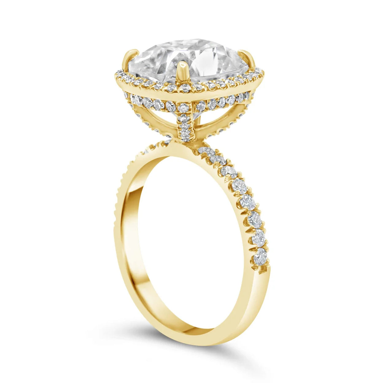 This beautiful setting features a halo around the center stone and a hidden halo with lab grown accent diamonds on the shank. You can pick any shape & any size for this style.