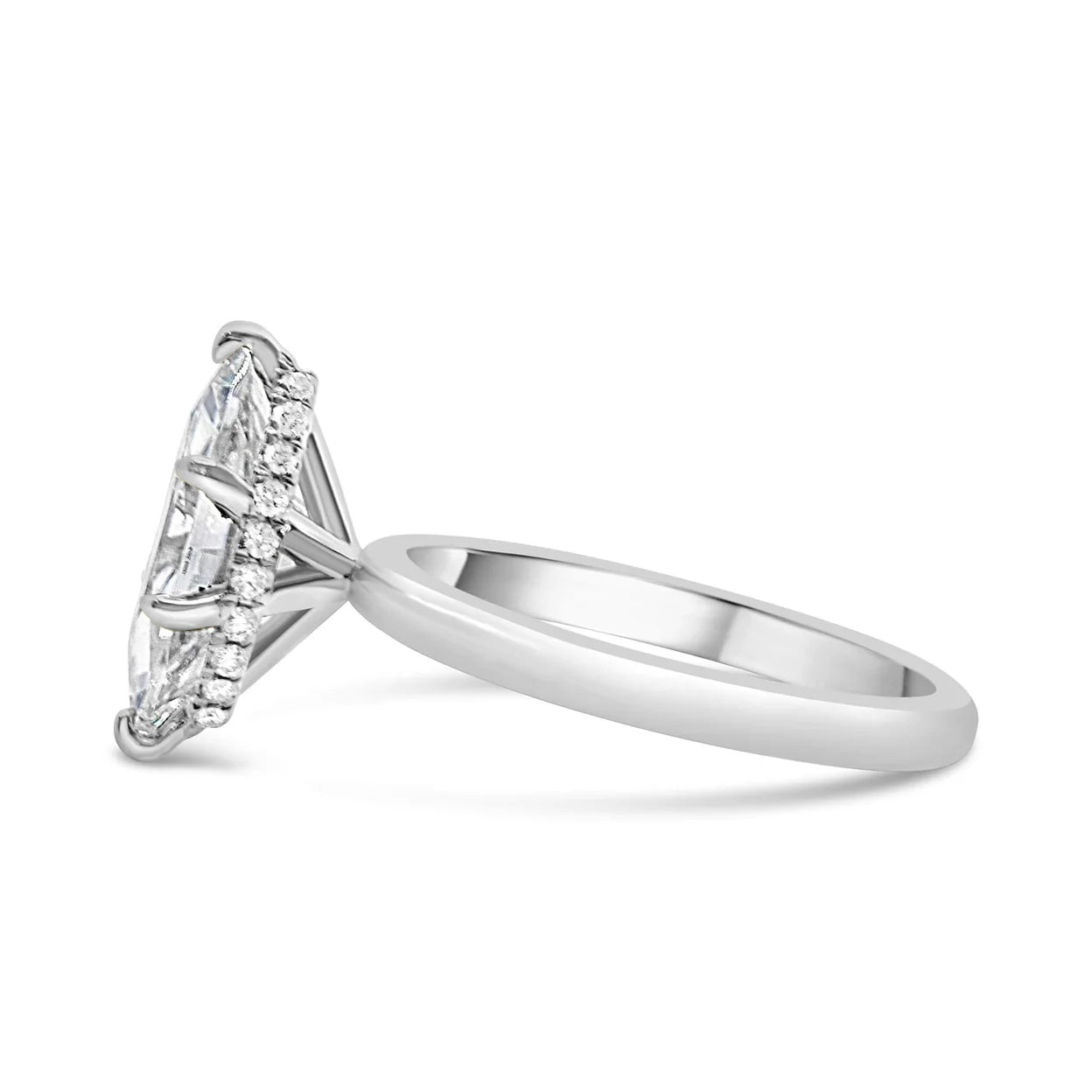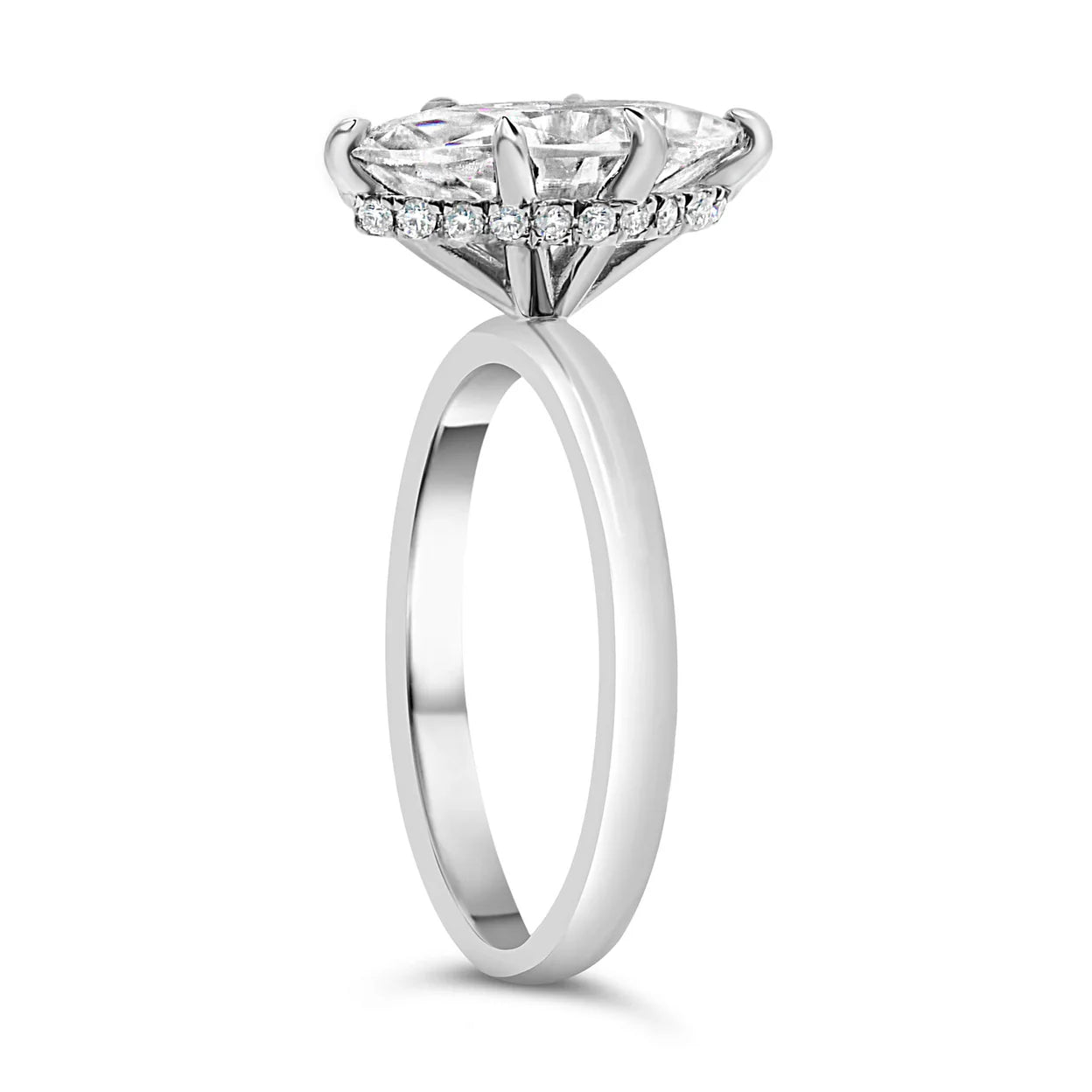 This beautiful setting features a diamond hidden halo surrounding the head. You can't go wrong with this delicate design. It will always be timeless. Brides love this ring because you can mix and match any wedding band with it.
