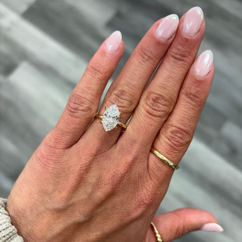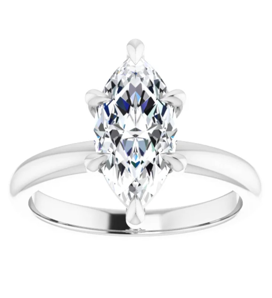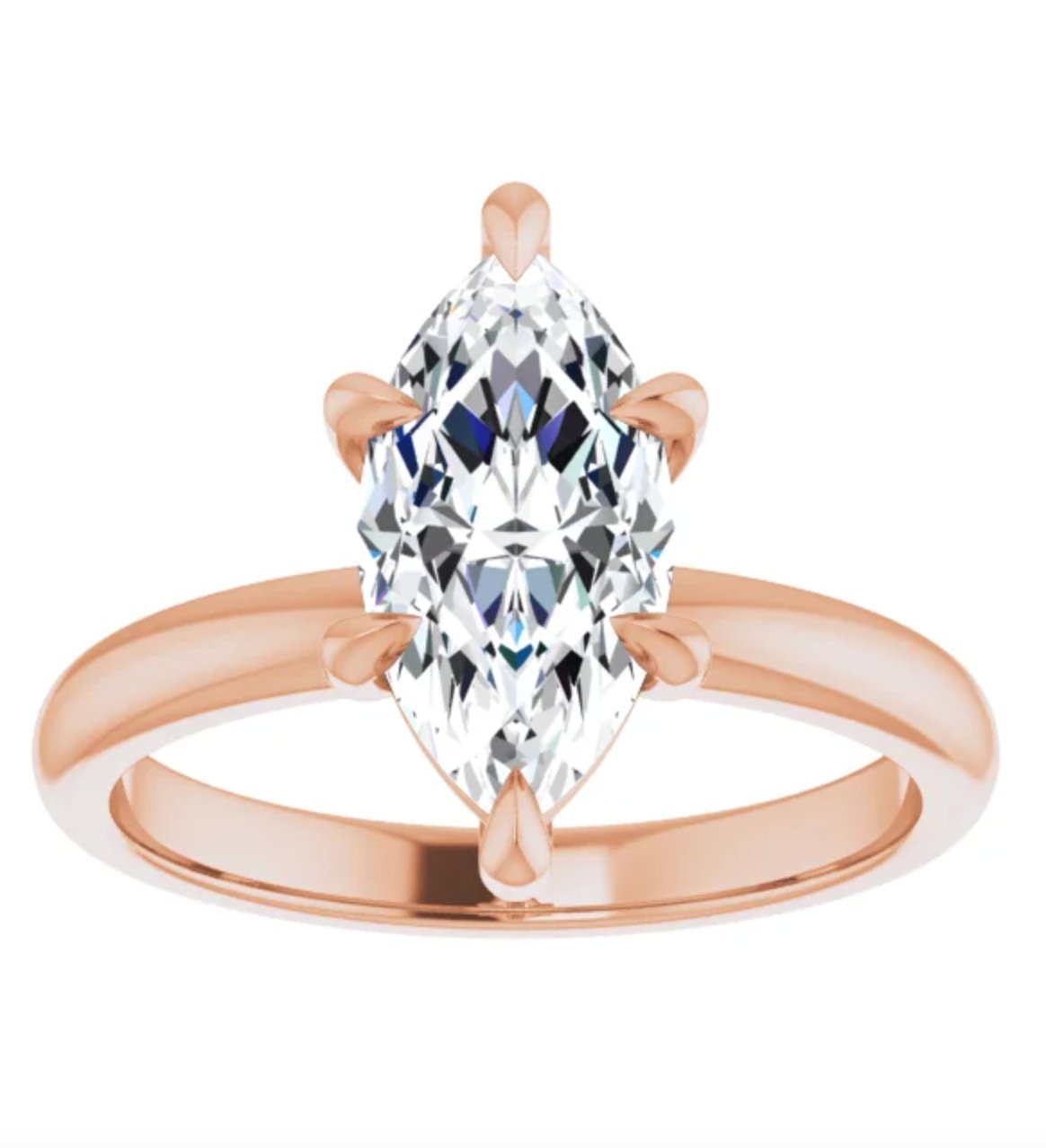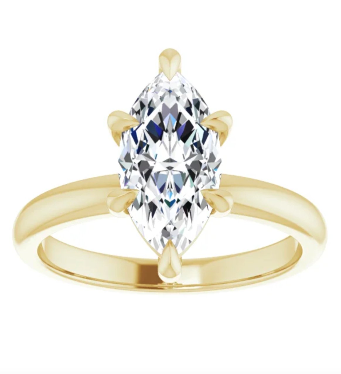 This beautiful engagement ring is the one and only classic Marquise lab grown diamond 14K gold solitaire engagement ring. Brides love this solitaire engagement ring because you can mix and match any women's wedding wedding bands for the perfect stack.