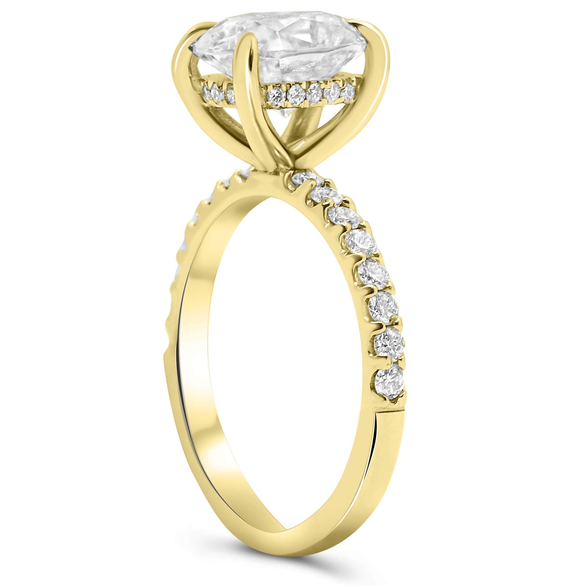 This unique engagement ring features an Elongated Cushion moissanite center stone with a diamond hidden halo & accent diamonds shank, all in 14K gold. You can't go wrong with this style, it is such a timeless look. Perfect for our elongated cushion lovers! Brides love this ring because you can mix and match any wedding band with it.