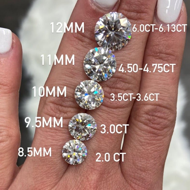 The photo in this listing features a center stone size 9.5mm. Available in different sizes for different pricing.