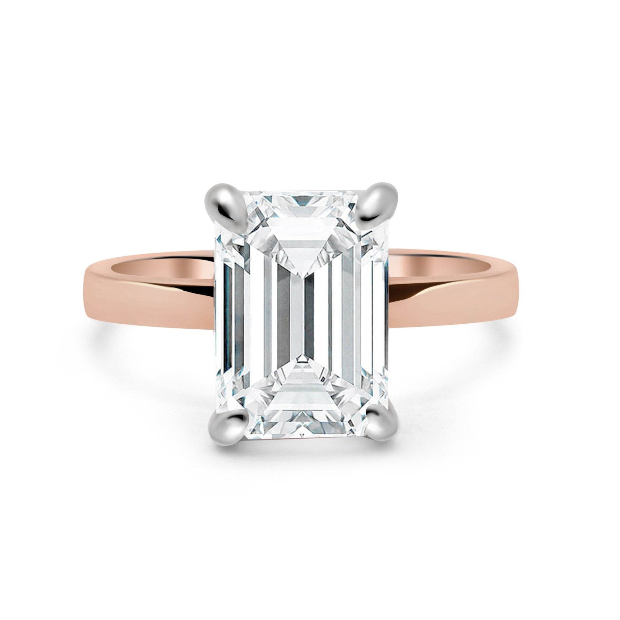 This beautiful engagement ring is the one and only classic Emerald moissanite 14K gold solitaire engagement ring. You can't go wrong with this classy design. It will always be timeless. Brides love this solitaire engagement ring because you can mix and match any women's diamond wedding band & women's moissanite wedding bands for the perfect stack. The attention is all on her, that one-of-a-kind center stone in your ring. Perfect for our emerald shape lovers. These gorgeous solitaires are also available with lab grown diamonds!