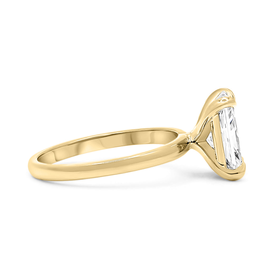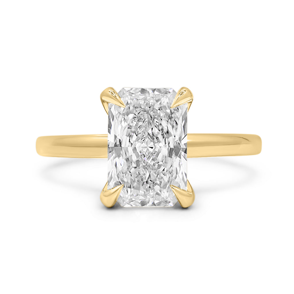 This beautiful engagement ring is the one and only classic Radiant moissanite 14K gold solitaire engagement ring. You can't go wrong with this classy design. It will always be timeless. Brides love this solitaire engagement ring because you can mix and match any women's diamond wedding band & women's moissanite wedding bands for the perfect stack. The attention is all on her, that one-of-a-kind center stone in your ring. Perfect for our radiant shape lovers. These gorgeous solitaires are also available with lab grown diamonds!