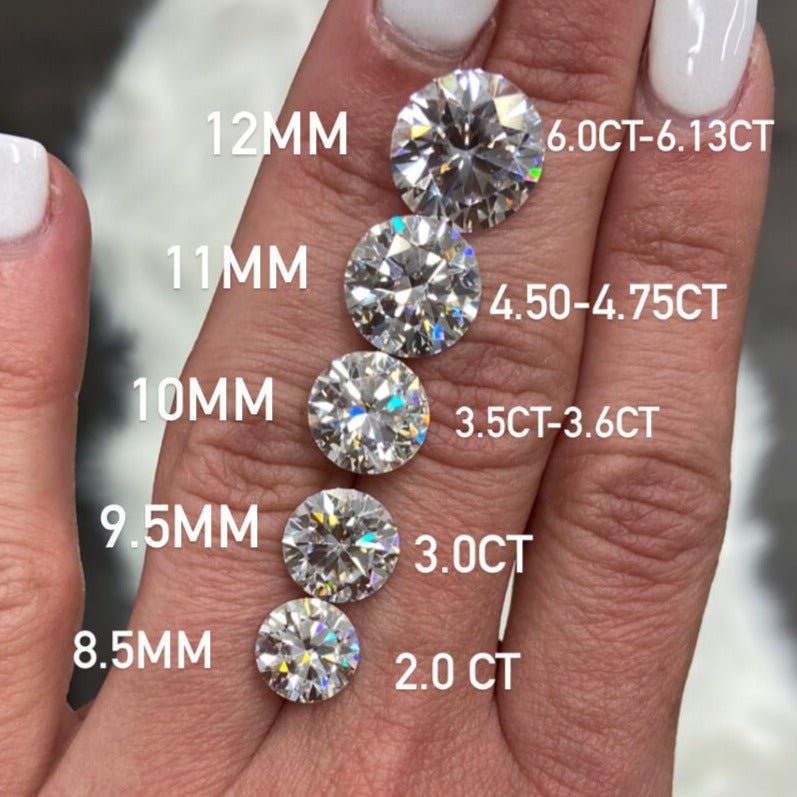 Moissanite Round mm size to carat weight comparison