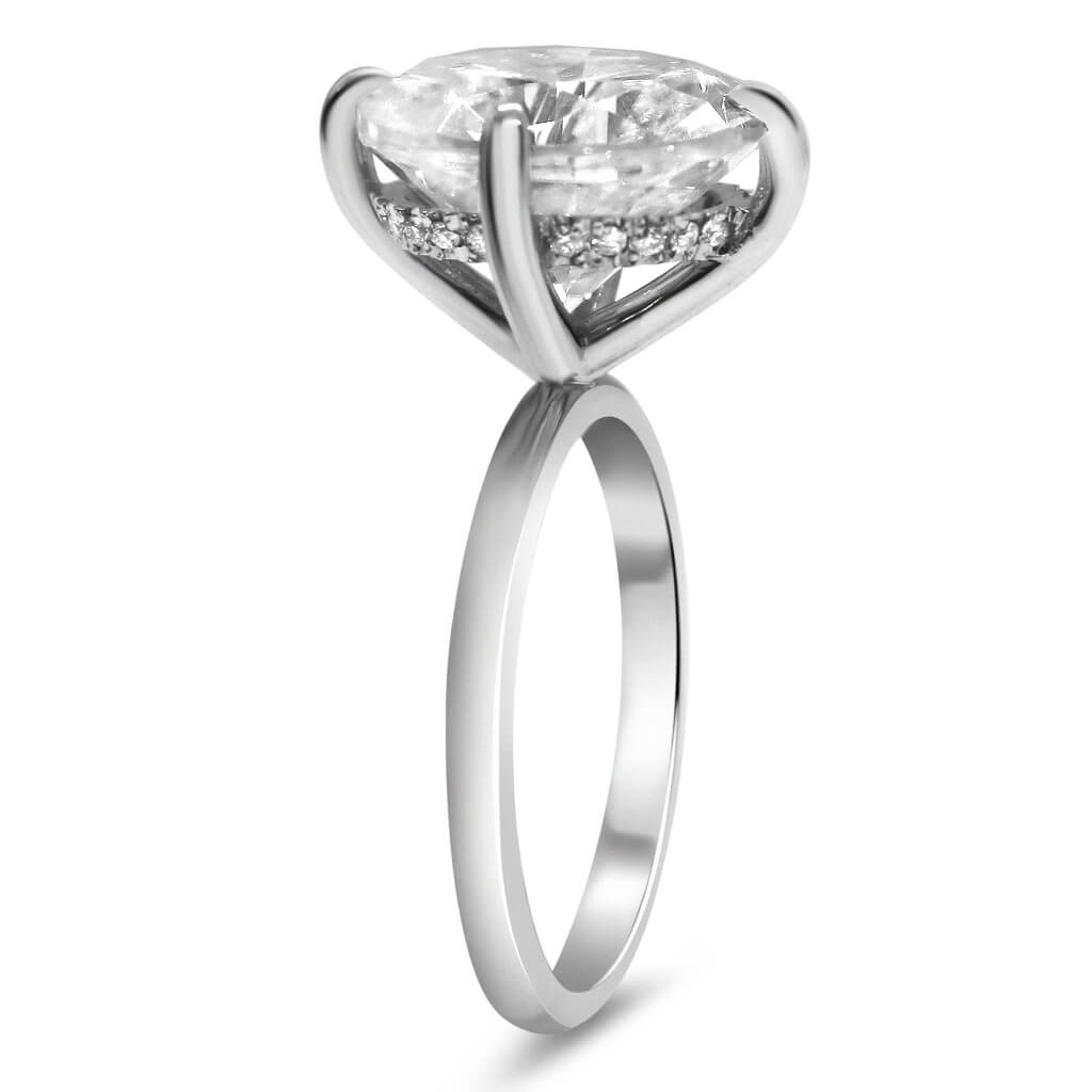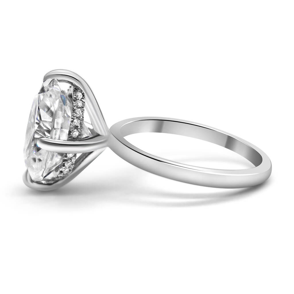 This beautiful Oval is compass prong style with claw or round prongs and a beautiful hidden halo with diamonds.
