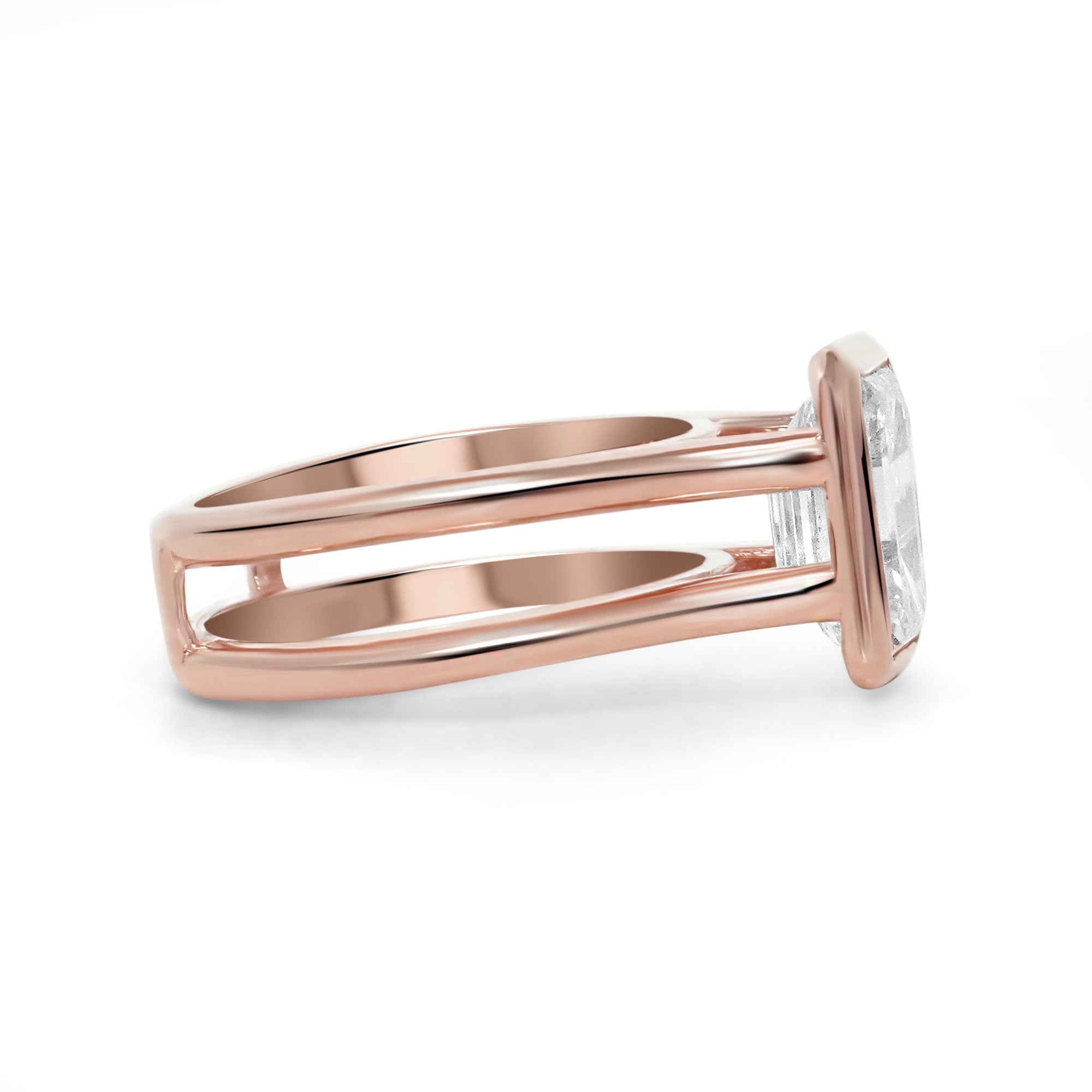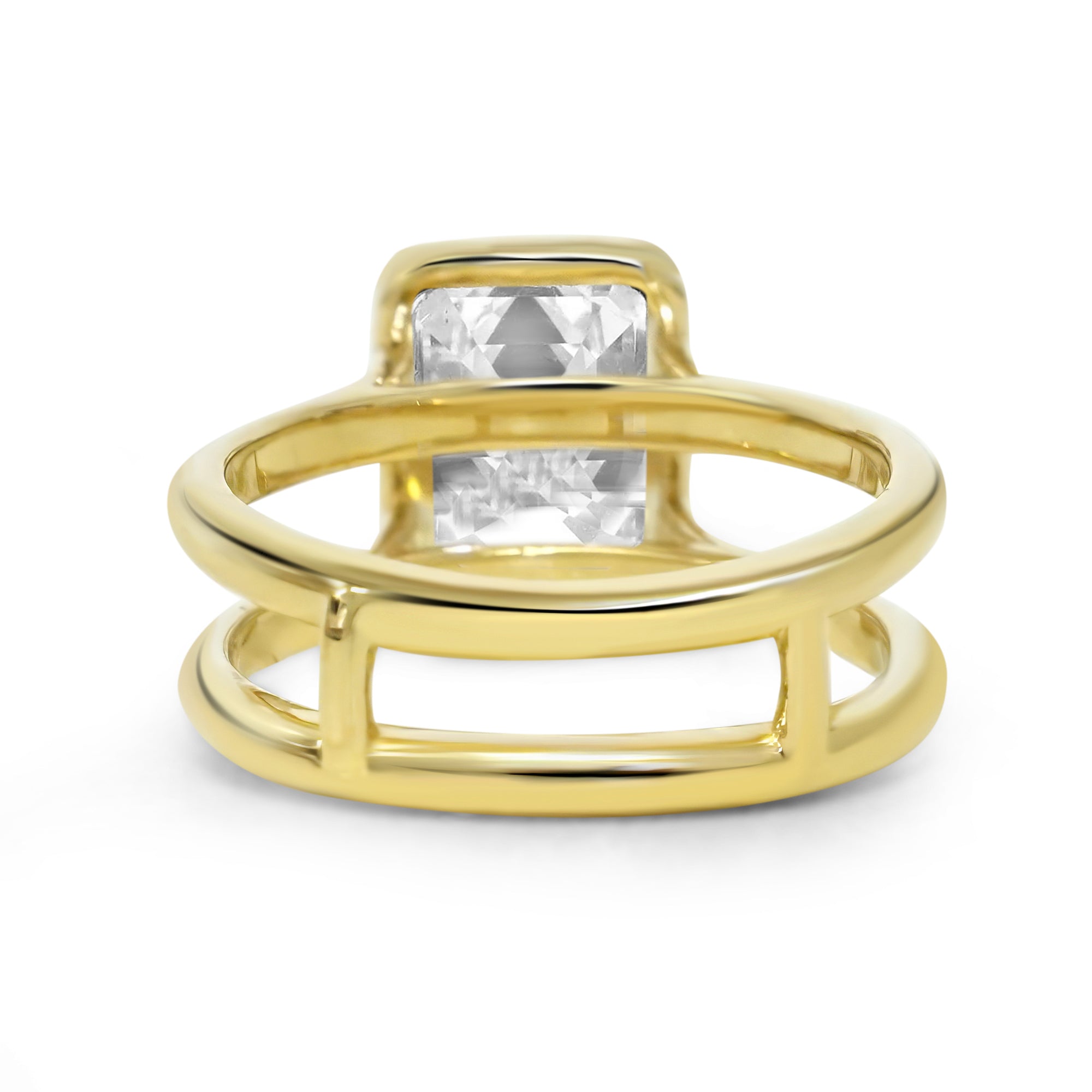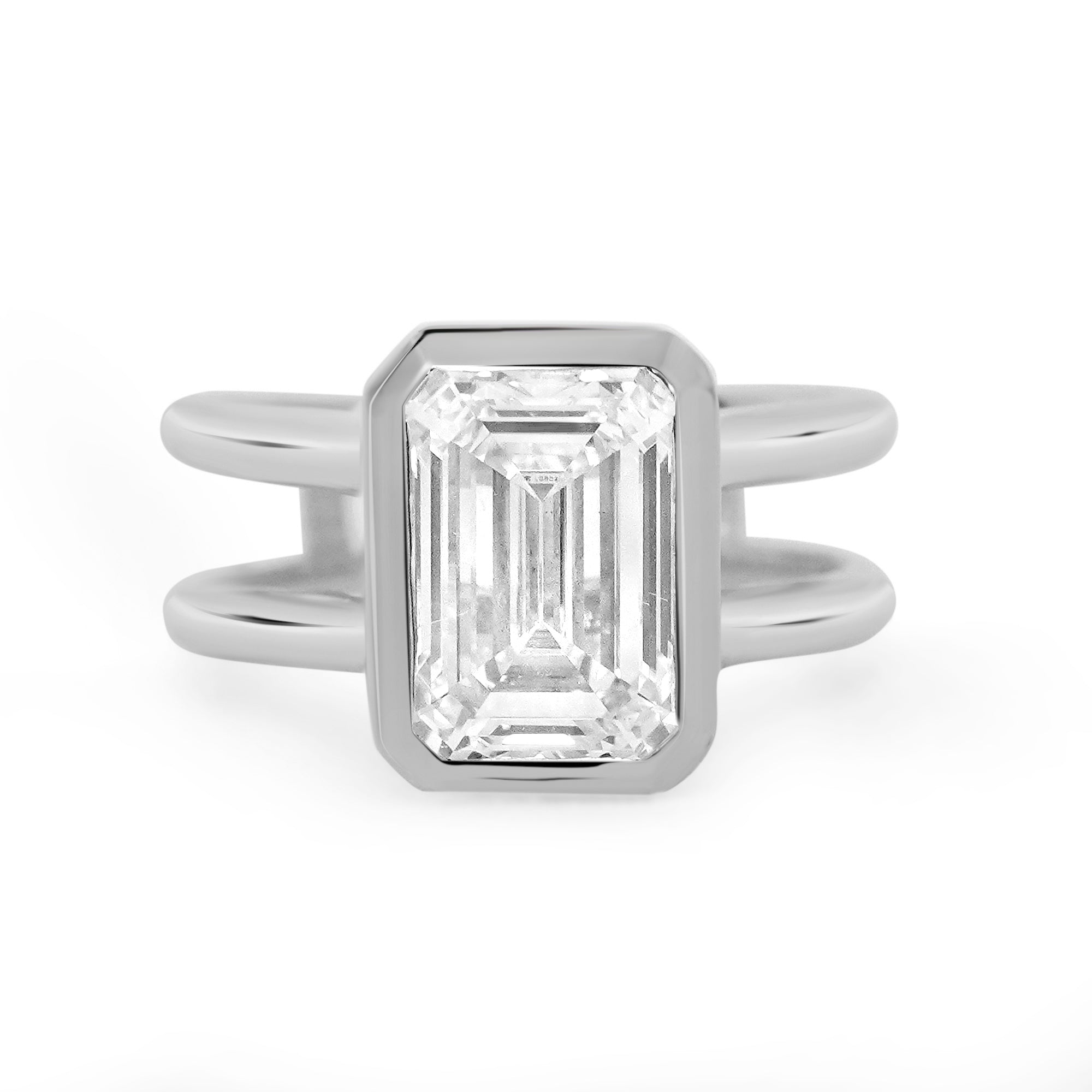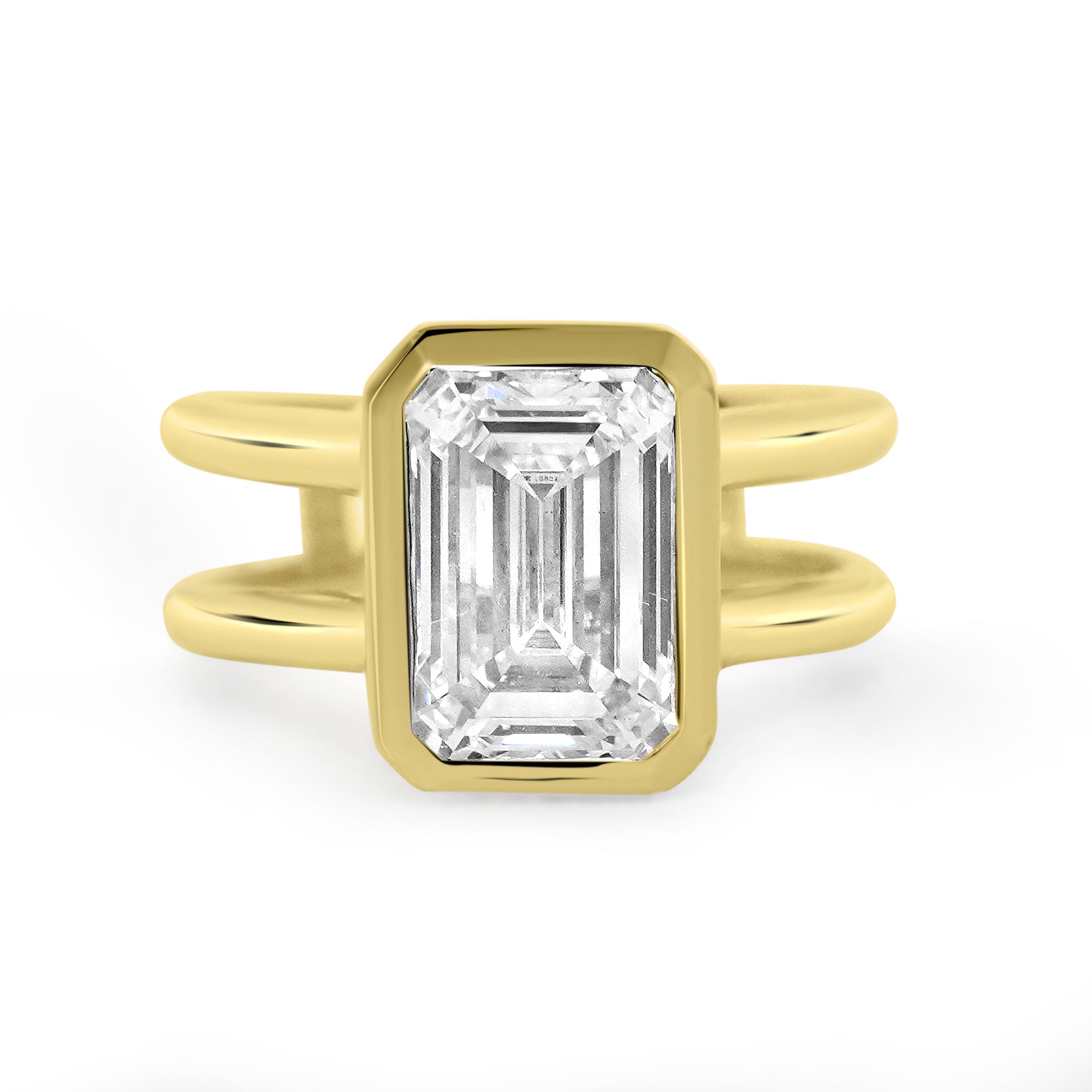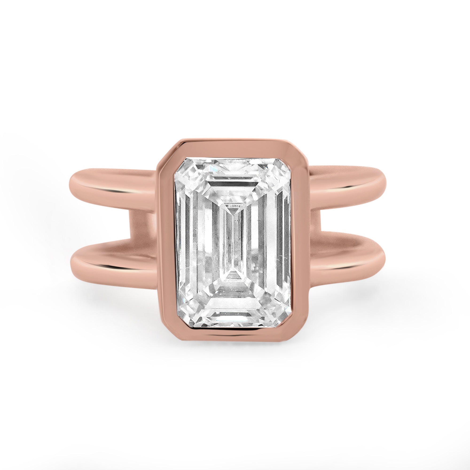 This beautiful engagement ring is the one and only classic bezeled double band engagement ring. You can't go wrong with this unique design. It will always be timeless and perfect for any shape.