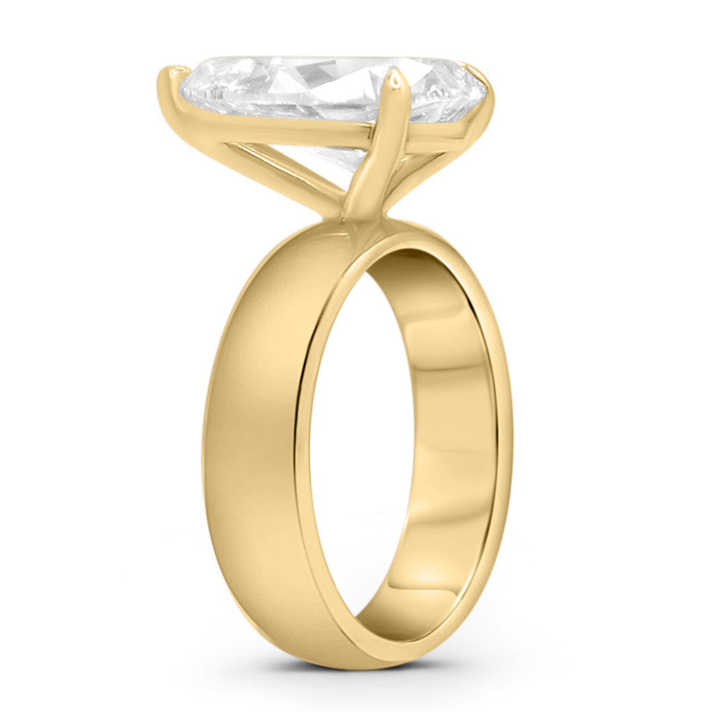 This beautiful 14K solitaire engagement ring features a 5mm half round band. Brides love this engagement ring because it is such a beautiful design. Perfect for a chunky look.