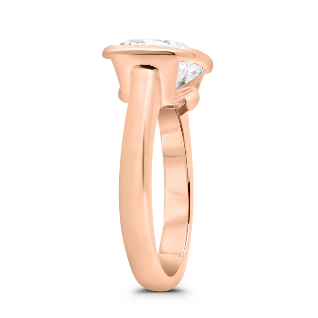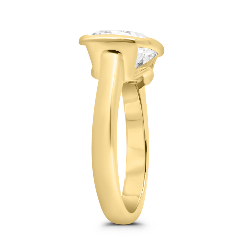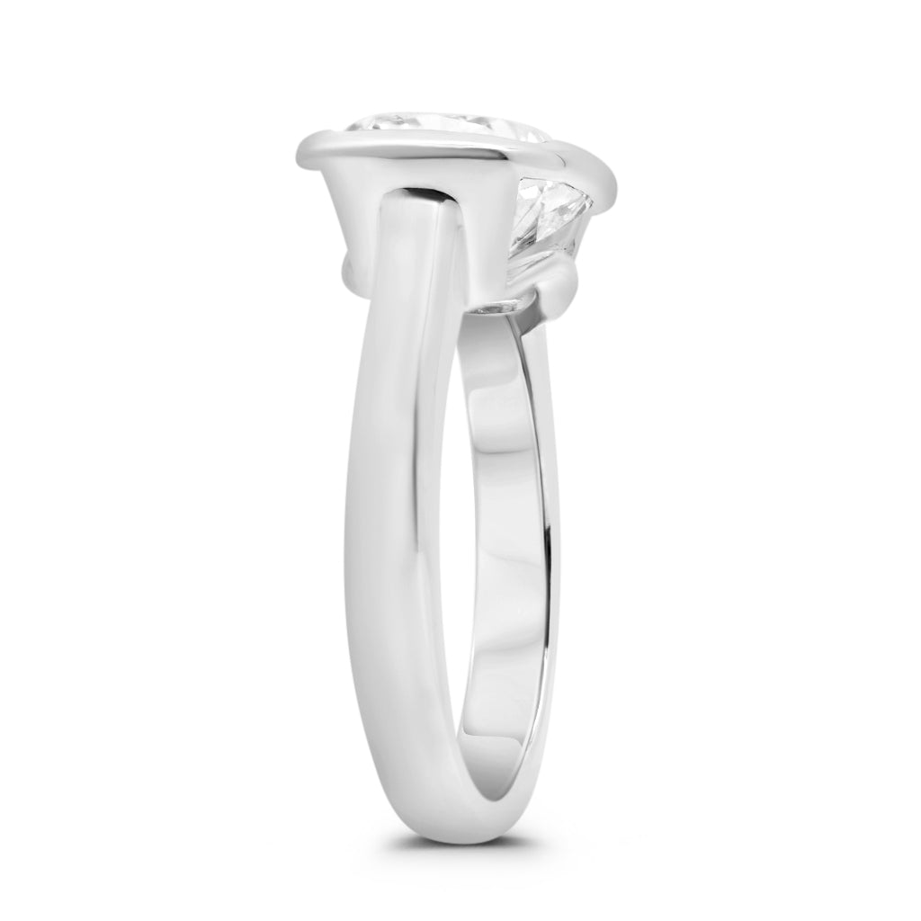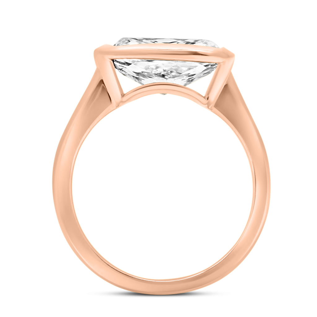 This beautiful engagement ring is in a east-west style, set in a bezel style design. It will always be timeless.